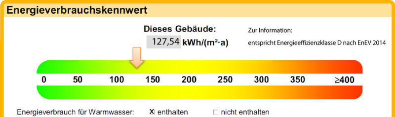 Energieverbrauchskennwert | 127,54 kWh/(m²a) [inkl. Warmwasser] |