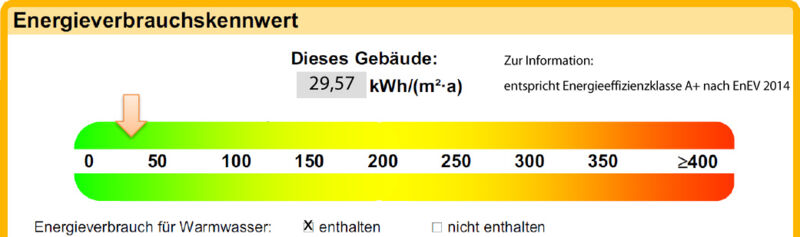 | Energieverbrauchskennwert | 29,57 kWh/(m²a) [inkl. Warmwasser] |