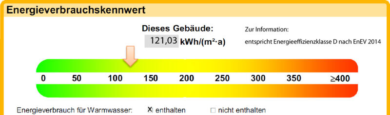 | Energieverbrauchskennwert | 121,03 kWh/(m²a) [inkl. Warmwasser] |