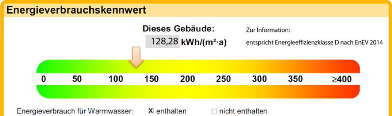 | Energieverbrauchskennwert | 128,28 kWh/(m²a) [inkl. Warmwasser] |